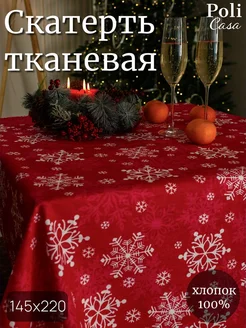 Прямоугольная новогодняя скатерть 220х145 на стол из рогожки