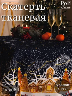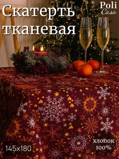 Прямоугольная новогодняя скатерть 180х145 на стол из рогожки