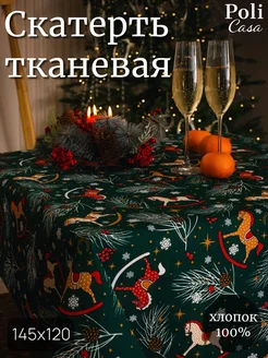 Прямоугольная новогодняя скатерть 120х145 на стол из рогожки