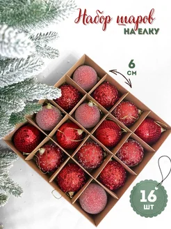 Новогодний набор елочных шаров красных 6см