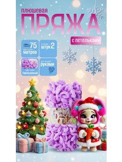 Пряжа плюшевая петельковая лаванда 2 мотка