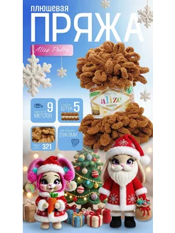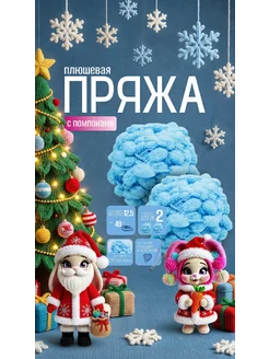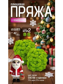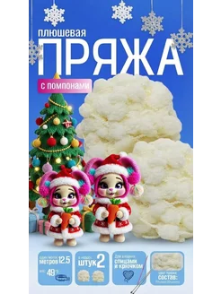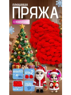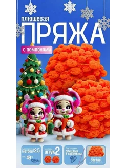 Пряжа для вязание оранжевая с помпонами плюшевая