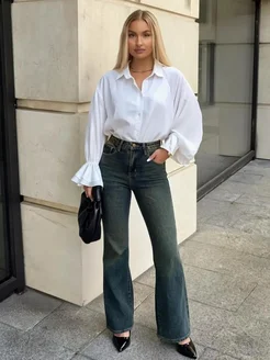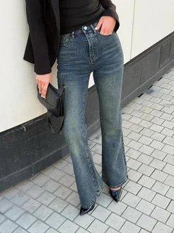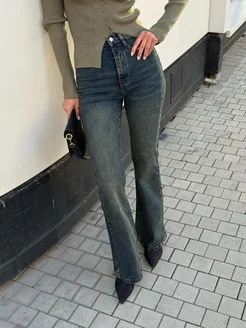 Джинсы клеш от колена высокая посадка
