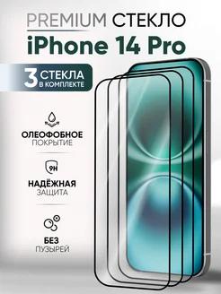 Стекло защитное для iPhone 14 Pro глянцевое 3 штуки