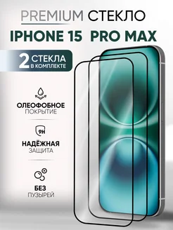 Стекло защитное для iPhone 15 Pro Max глянцевое 2 штуки