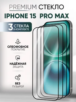 Стекло защитное для iPhone 15 Pro Max глянцевое 3 штуки