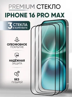 Стекло защитное для iPhone 16 Pro Max глянцевое 3 штуки