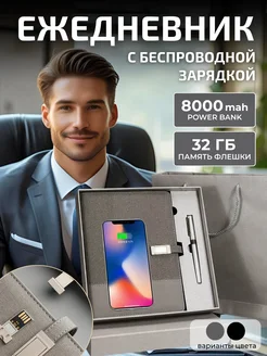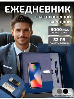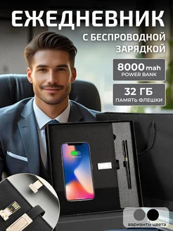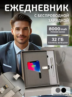 Подарочный ежедневник а5 с беспроводной зарядкой и флешкой
