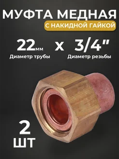 Муфта с накидной гайкой 22х3 4" для медных труб (2шт)