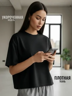 Футболка черная укороченная плотная