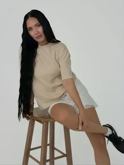 Футболка укороченная плотная бежевая