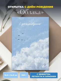 Открытка C днём рождения с авторской иллюстрацией «Облака»