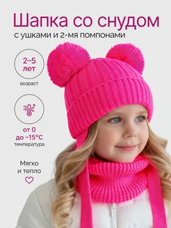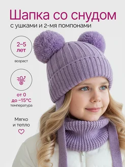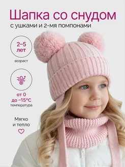 Шапка с помпонами для девочки зимняя вязаная и снуд