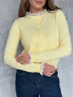 Кардиган укороченный на пуговицах с кружевом