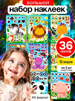 Набор наклеек с животными в подарок детям, 36 шт