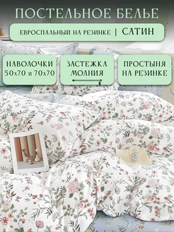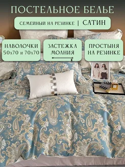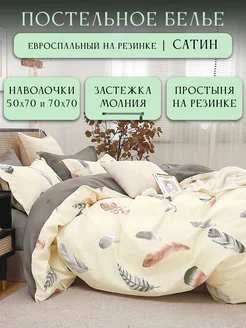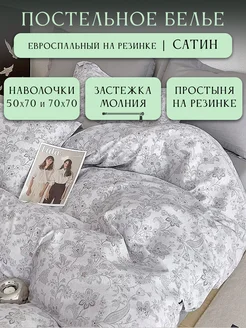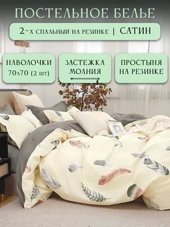 Постельное белье 2 спальное сатин простыня на резинке кпб