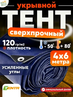 Тент укрывной водонепроницаемый сине-серый 120 гр м2, 4х6 м