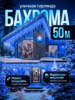 Гирлянда уличная бахрома 50 метров синий свет