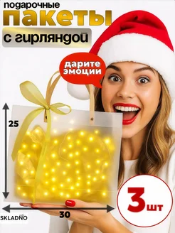 Пакеты подарочные с ручками прозрачные с гирляндой золото
