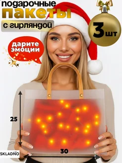 Пакеты подарочные с ручками прозрачные с гирляндой и тишью