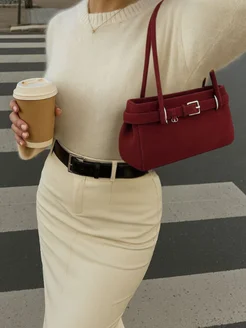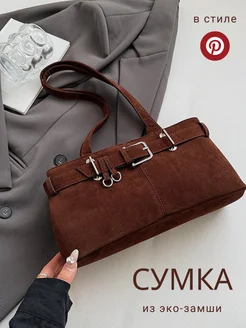 Сумка багет на плечо замшевая