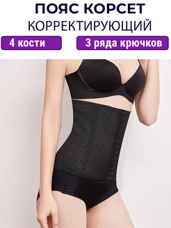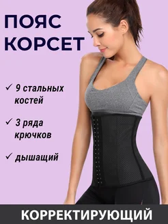 Корсет утягивающий 9 костей, пояс для похудения черный