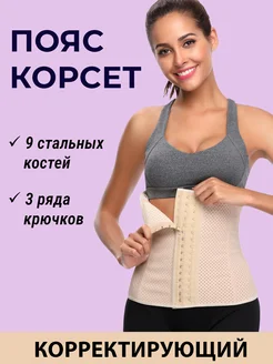 Корсет утягивающий 9 костей, пояс для похудения бежевый