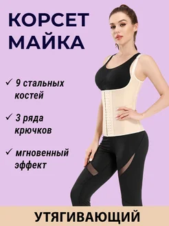 Корсет майка 9 костей с лямками утягивающий бежевый