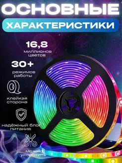 Светодиодная лента 5 метров с пультом RGB LED многоцветная