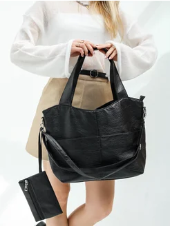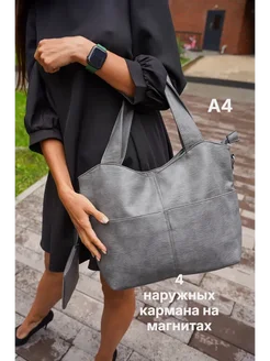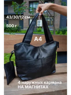 Сумка хозяйственная шоппер большая черная для учебы А4