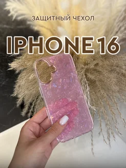 Чехол для iPhone 16 противоударный прозрачный розовый