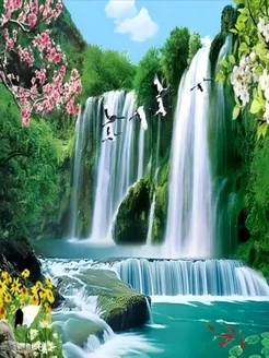 Водопады Алмазная мозаика 30*40 см на подрамнике