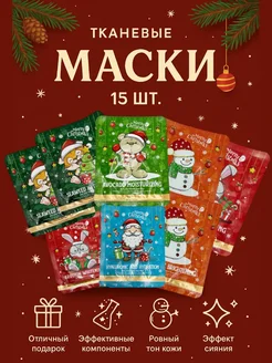Набор тканевых масок для лица новогодний подарочный 15 шт