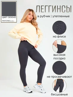 Леггинсы утепленные лосины с высокой посадкой в рубчик