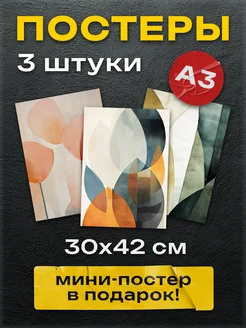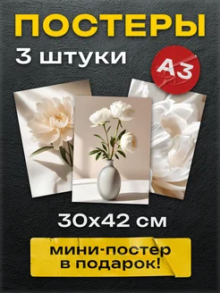 Интерьерные арт постеры на стену "Зелёные цветы" 3шт А3