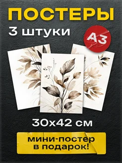 Интерьерные постеры на стену Бежевые листья