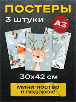 Постеры на стену интерьерные Зимние зверята