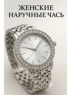 Часы женские наручные серебристые со стразами, кварцевые