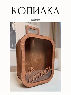 Копилка для денег деревянная прозрачная на отпуск 20*16*6см