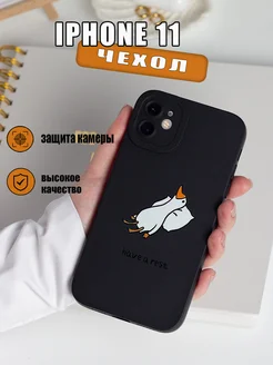 Чехол на iPhone 11 черный с принтом Ленивый Гусь