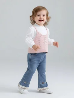 Костюм для малыша тройка 3 в 1. Лонгслив, жилет, джинсы