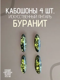 Кабошоны Буранит черный (искусственный янтарь) 4шт. 8х23 мм