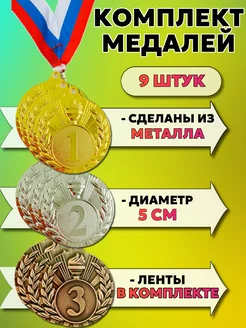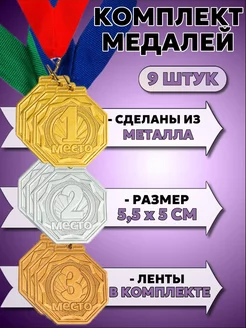 Медали металлические спортивные 1 2 3 место комплект 9 штук