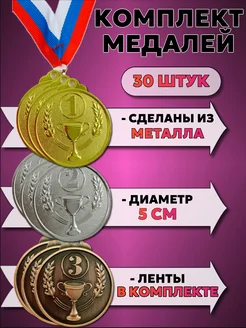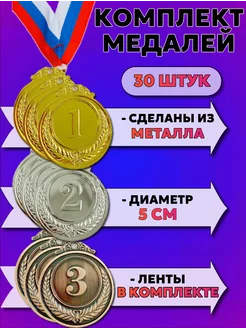Медали металлические спортивные 1 2 3 место комплект 30 штук