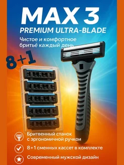 Станок для бритья Макс3 с 8 сменными кассетами +1