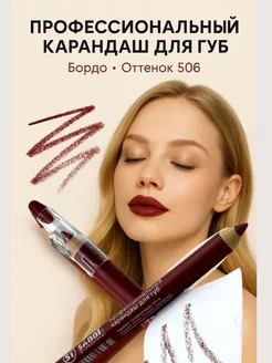 Карандаш для губ бордовый стойкий матовый с точилкой