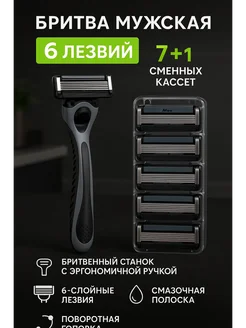 Бритва мужская многоразовая, станок для бритья с 6 лезвиями