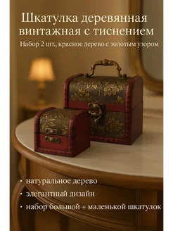 Шкатулка деревянная винтажная набор 2 шт — сундучок