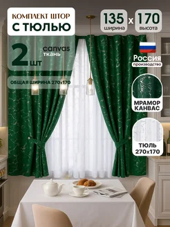 Комплект шторы с тюлью 135*170 2шт для кухни короткие мрамор