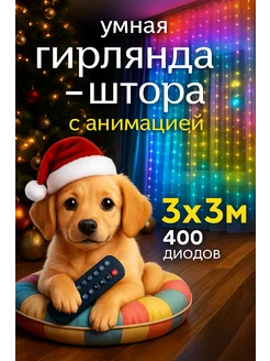 Умная гирлянда smart штора на окно 3 х 3 метра на usb